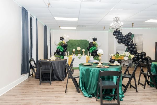 Our venue is 2246 square feet and holds up to 150 guests seated. Our facility is perfect for events and gatherings such as: weddings, wedding receptions, book signings, gender reveals, church service, art shows, fitness classes and much more. There are infinite possibilities!
