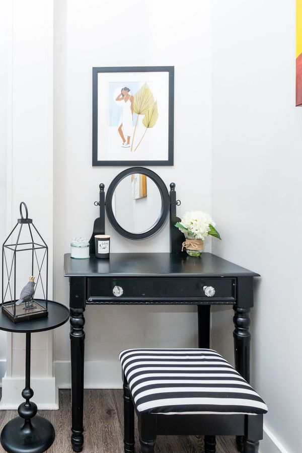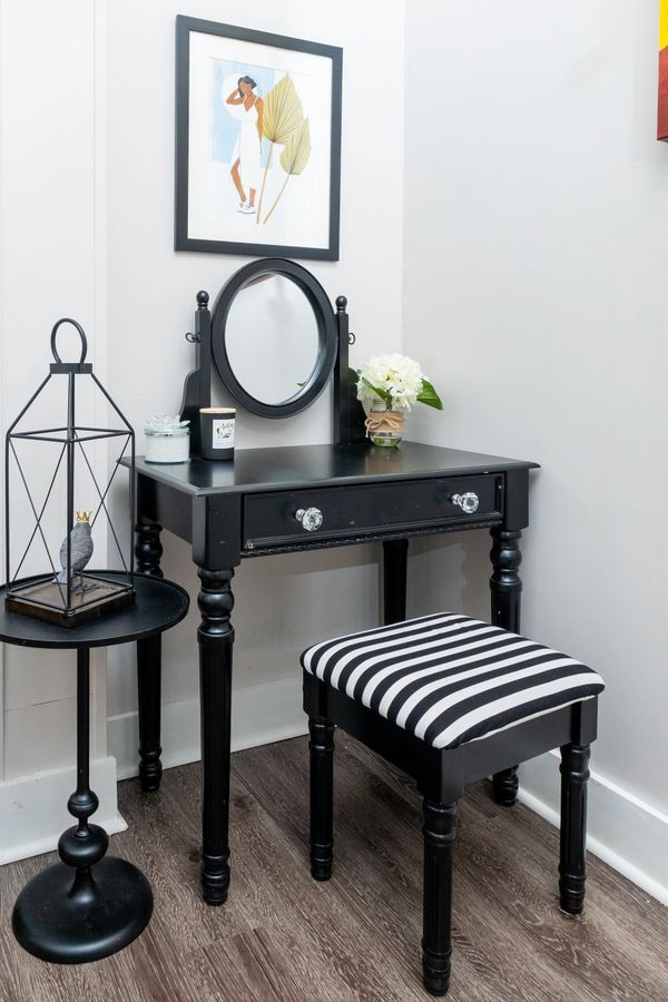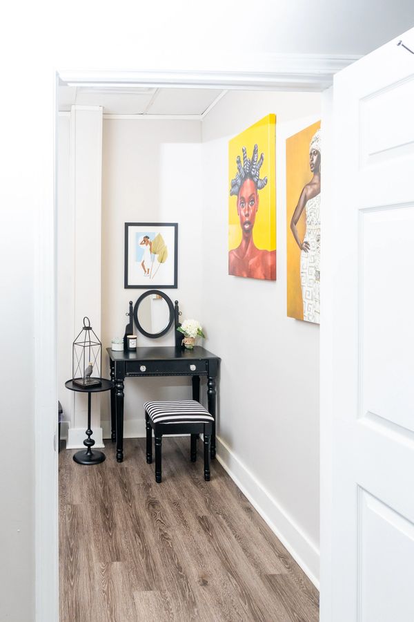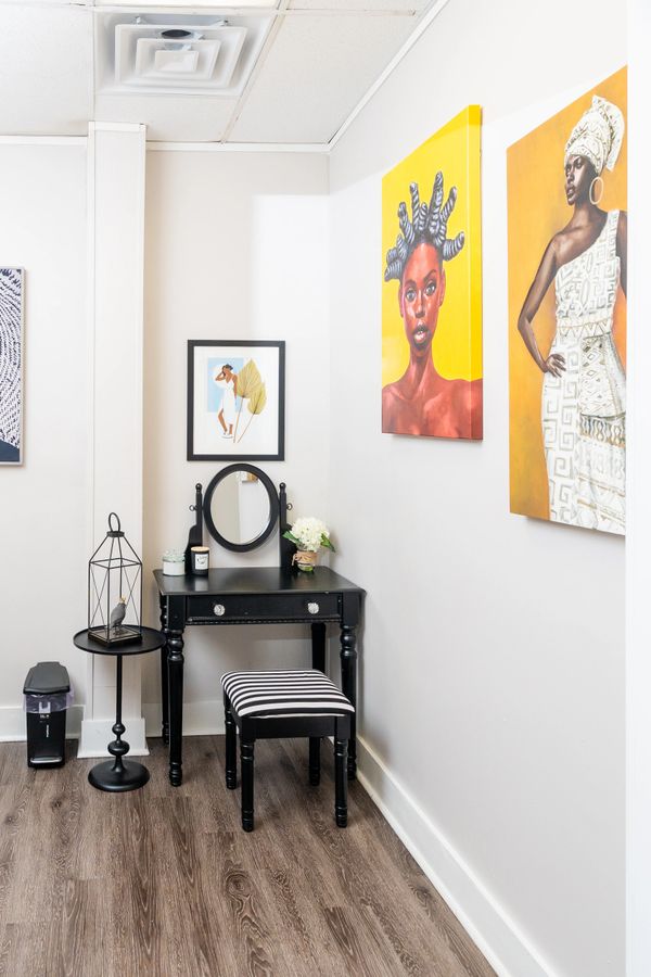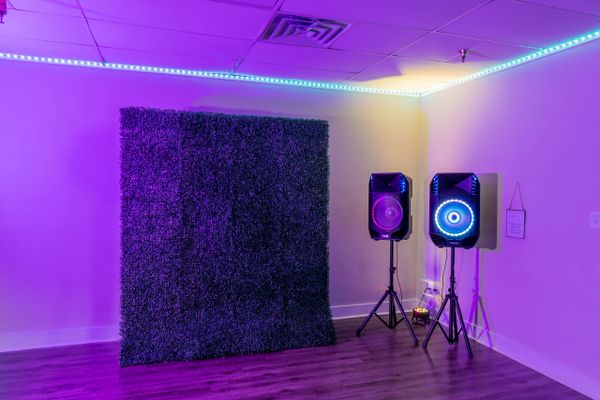 Our first venue was so nice, that we had to do it twice! Suite II is located in the exact same plaza. It just has a different suite number. We wanted to create contrast with color in the new suite. The walls are gray with black and crystal chandeliers. It has the same style chairs but in black. The amenities are almost the same.