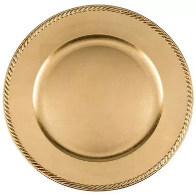 Gold Charger Plates make a complementary addition to event table settings. This charger has a smooth border and an indented center. Combine this versatile charger with a plate, napkin, and flatware for your next gathering! We have 150 of them. They are $1 per charger to rent.