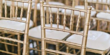 You know that chair you always see at weddings? It's called a Chiavari. It is named after the small Italian town where it originated, the iconic seat—which dates back to the early 19th century—has become a popular pick among party planners due to its simple yet elegant silhouette: a thin, lightweight frame with legs and rails that resemble bamboo. We now provide them as an upgrade. We have 150 of them with white cushions. They are $2 per chair to rent.