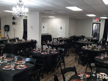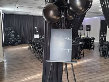 Transform your event from ordinary to extraordinary with our beautiful black ceiling drapery! The panels provide a mystical and enchanting ambiance in Suite II. This upgrade is custom fit and only available in Suite II.